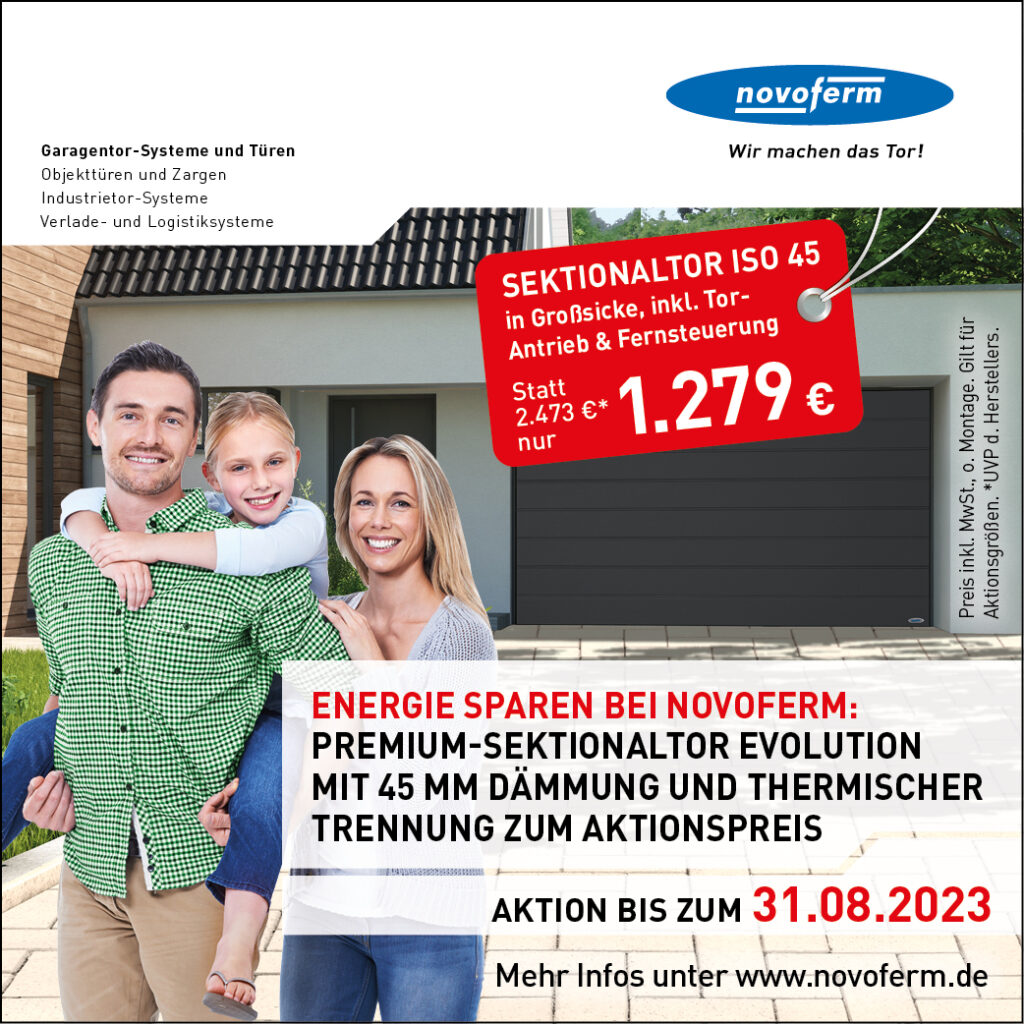 Aktuelle Beiträge zu unserer Web-Site Verkaufsaktion Sektionaltore ISO 20 In der Zeit bis 31.08.2023 führen wir unsere Verkaufsaktion für Sektionaltore mit erheblichen Preisvorteilen durch. Überzeugen Sie sich selbst: Mehr Informationen zur Aktion Sektionaltore finden Sie hier mit einem Klick ! Verkaufsaktion Sektionaltore ISO 45 Mehr Informationen zur Aktion Sektionaltore finden Sie hier mit einem Klick ! Herkunft der Texte und Bilder auf dieser Seite: Novoferm GmbH, Steinig Bauelemente